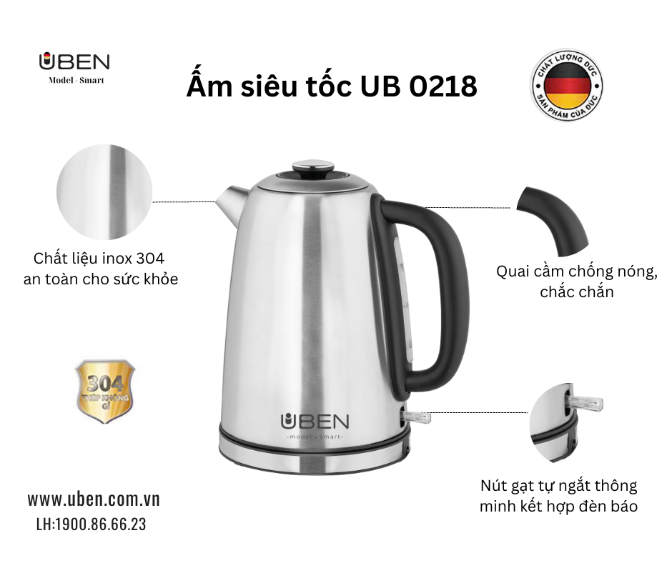 Trong nhịp sống hiện đại, một chiếc ấm siêu tốc không chỉ đơn thuần là thiết bị đun nước, mà còn là trợ thủ đắc lực giúp tối ưu hóa thời gian và nâng cao chất lượng sinh hoạt. Model UB0218 với tiêu chuẩn công nghệ Đức mang đến những giá trị sử dụng thực tế vượt trội.