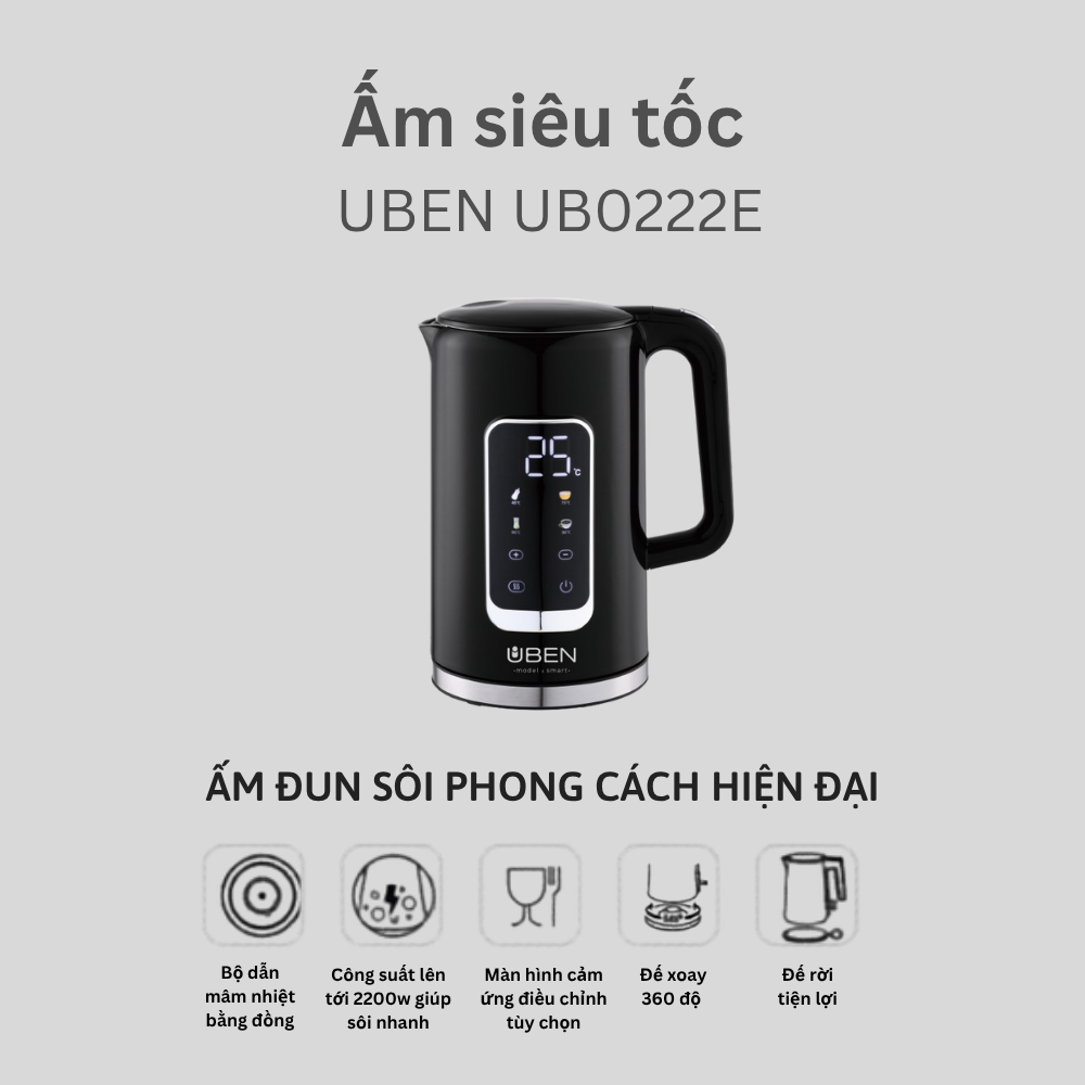 Ấm Siêu Tốc Đế Đúc Điều Chỉnh Nhiệt Độ UB 0222E: Sự Kết Hợp Hoàn Hảo Giữa Công Nghệ Và Sang Trọng