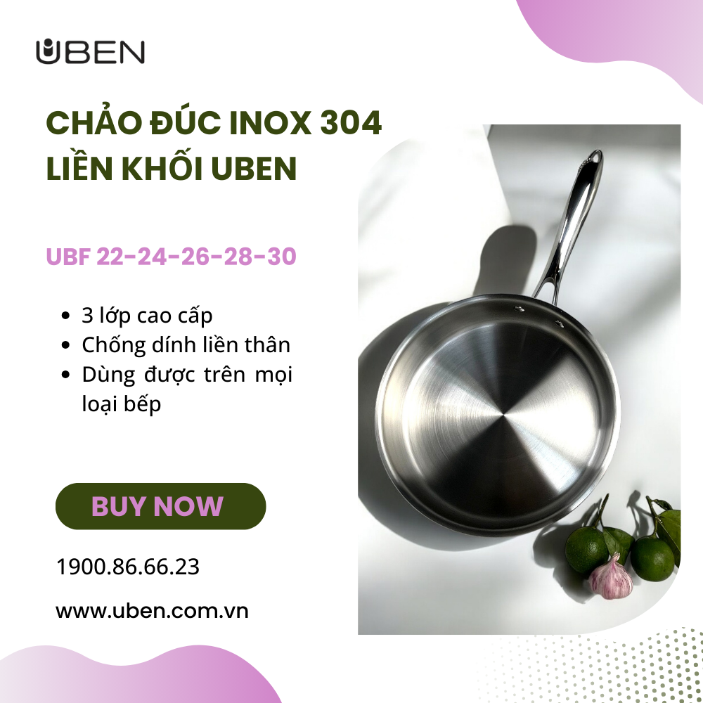 Chảo Inox Nguyên Khối 24cm Uben UBF 2024: Đẳng Cấp Bền Bỉ, An Toàn Cho Sức Khỏe